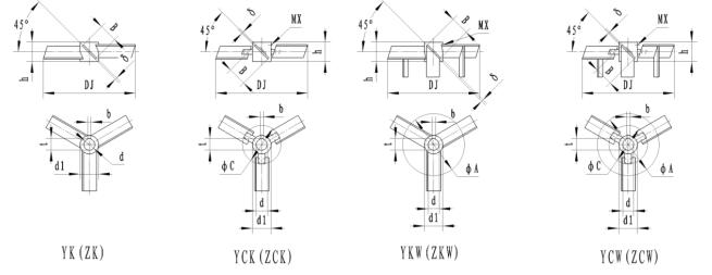 | 17、18、19 | PK、PCK、PWK | 0 | DJ/D=0.2~0.5 b/DJ=0.2、0.125 Z=6 |